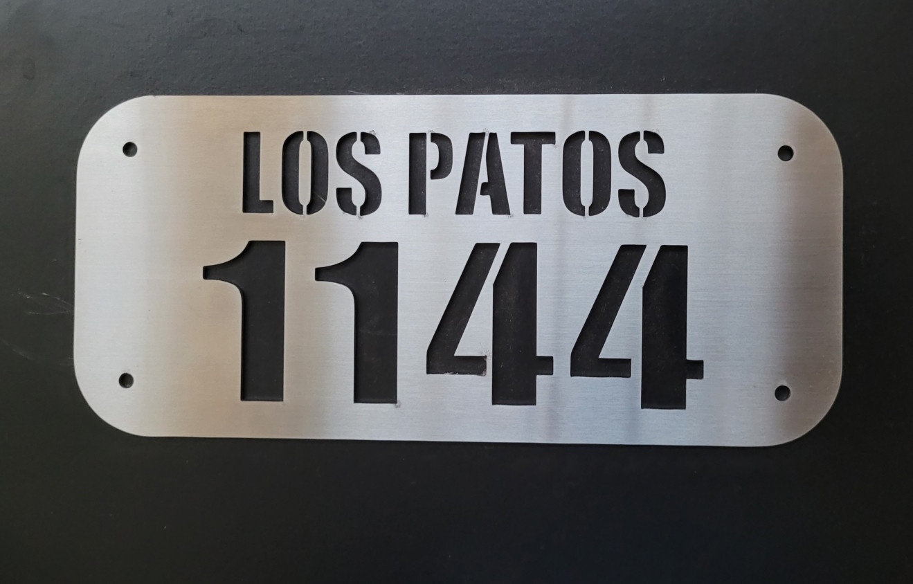 Placas en aluminio natural grabado laser gris-oscuro.